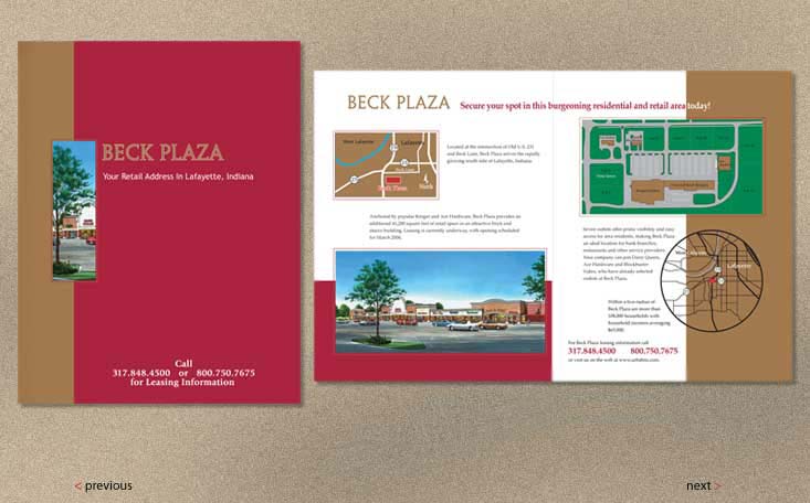 Urbahns Companies Leasing brochure for Beck Plaza Retail Center in Lafayette, IN