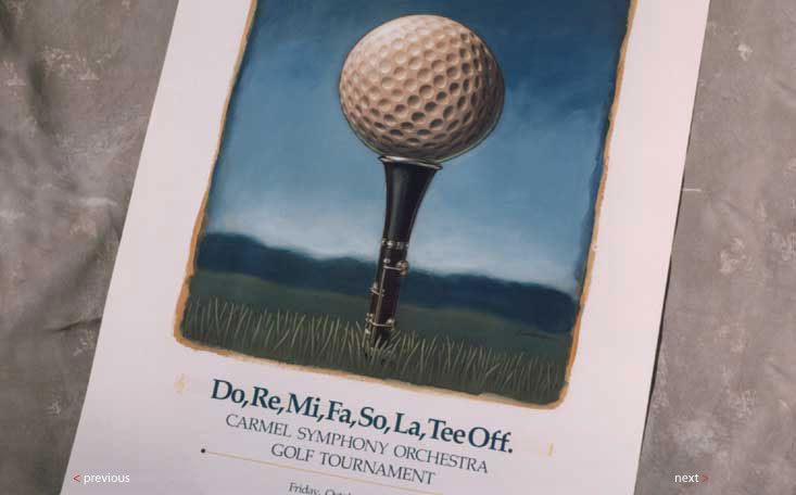 Carmel Symphony Orchestra Poster to promote fund-raising golf tournament. Illustration by Garry Nichols